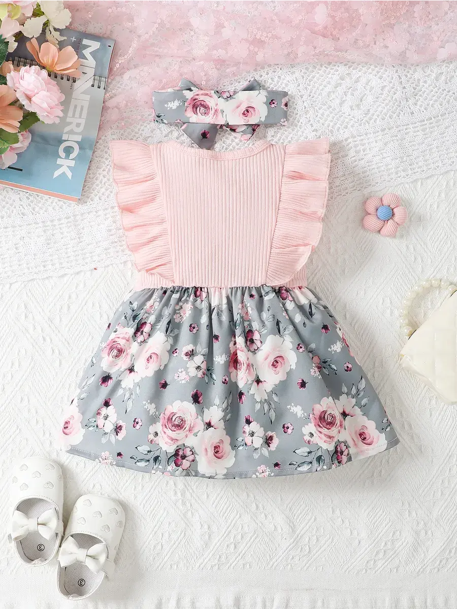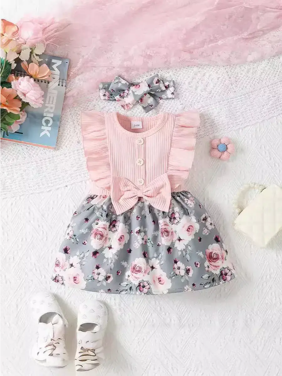 Комплект включает также милую повязку на голову, которая дополнит образ вашей малышки. Это платье — отличный выбор на лето и замечательный подарок для новорожденных и маленьких модниц!