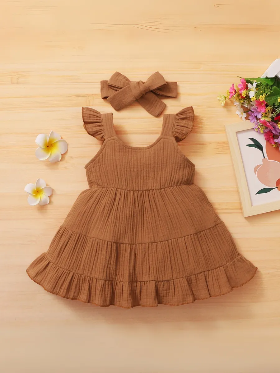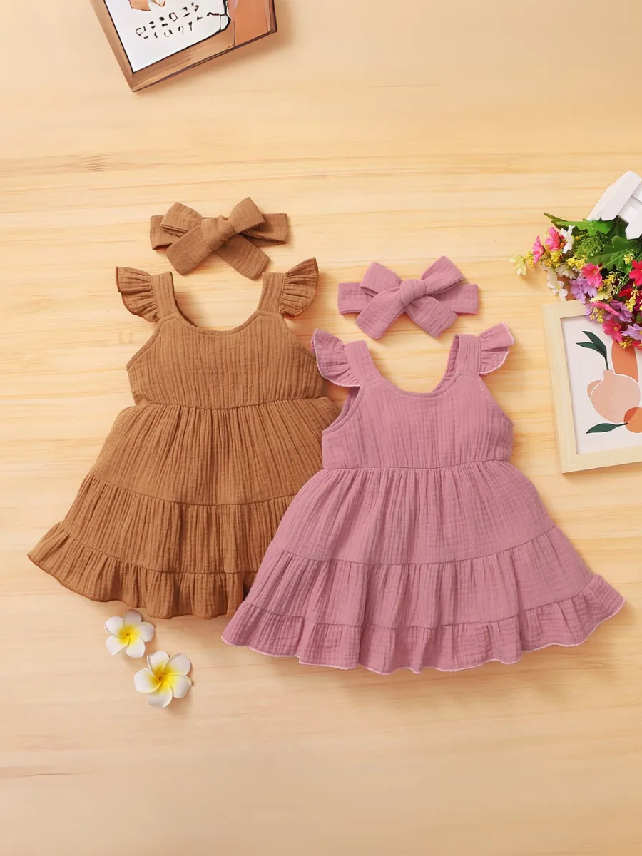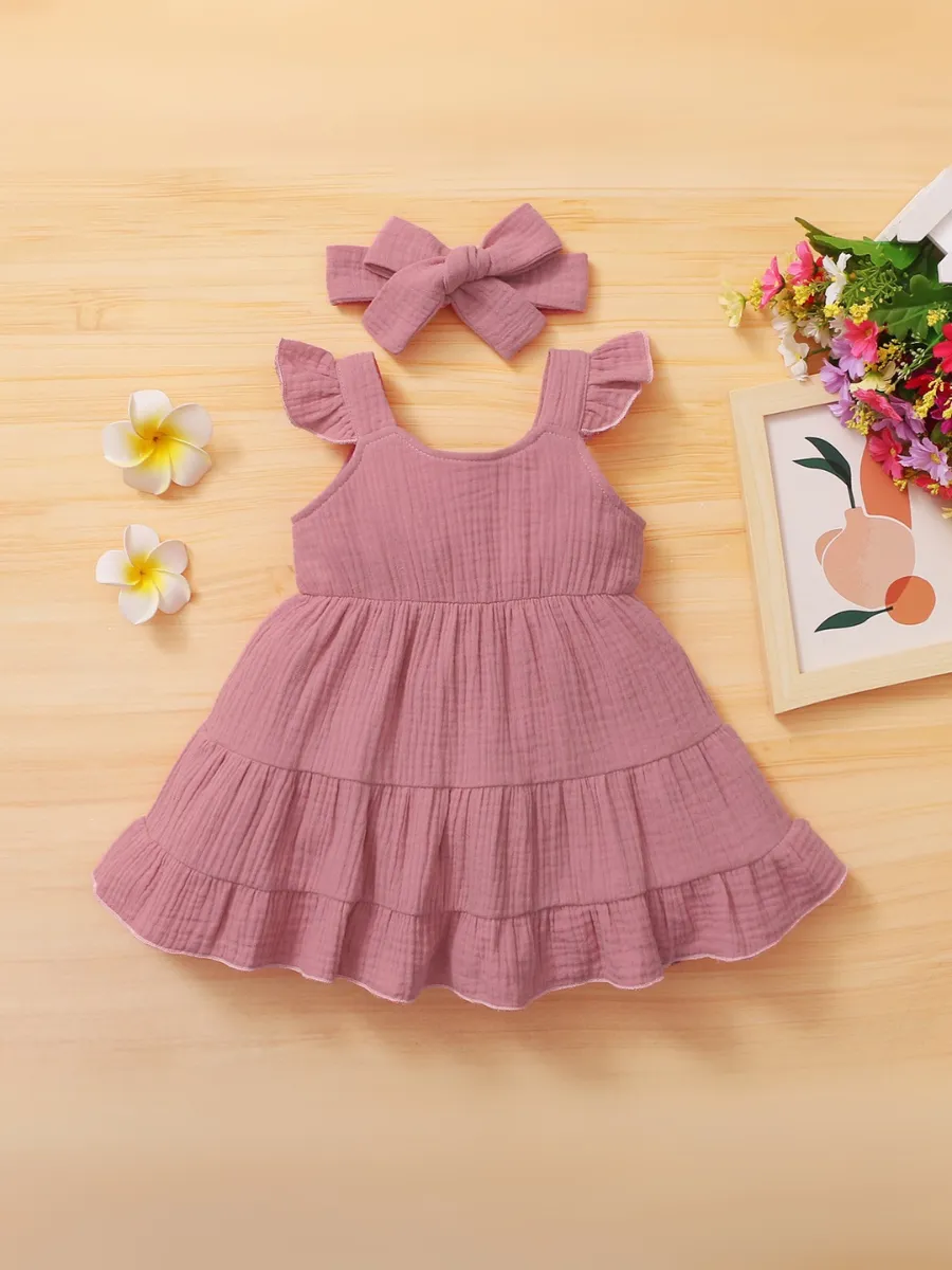 Комплект включает также милую повязку на голову, которая дополнит образ вашей малышки. Это платье — отличный выбор на лето и замечательный подарок для новорожденных и маленьких модниц!