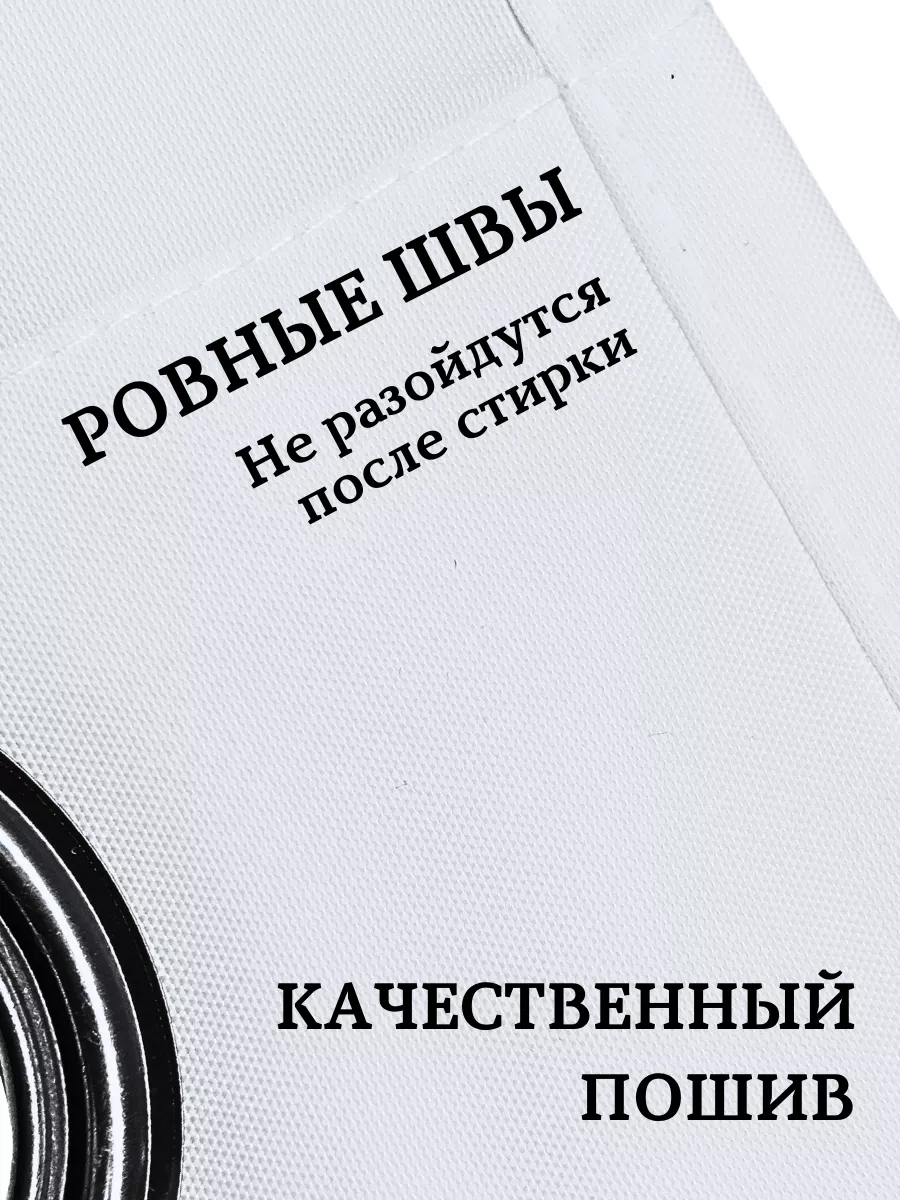 В нижнем крае шторы предусмотрен шнур-утяжелитель, который обеспечивает надежную фиксацию и предотвращает подъем ткани. А металлические люверсы из нержавеющей стали добавляют прочности и долговечности.