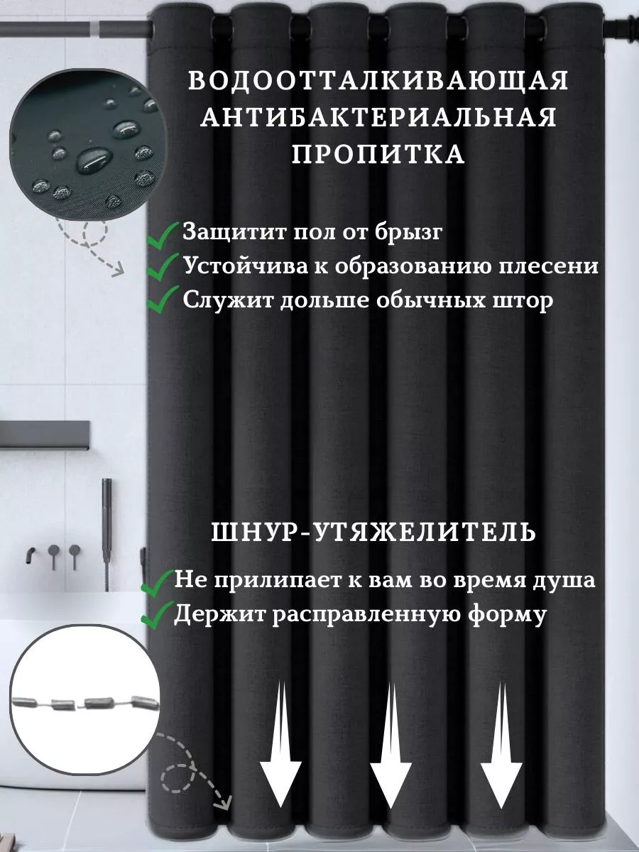 • Водоотталкивающая и водонепроницаемая: Забудьте о проблемах с плесенью и влагой! Наша штора защищает вашу ванну и душевую от нежелательной воды.