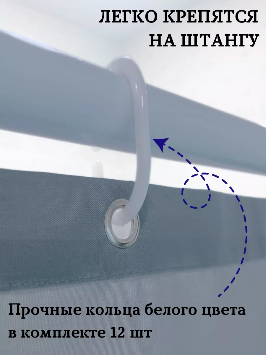 тканевая штора, 12 пластиковых колец