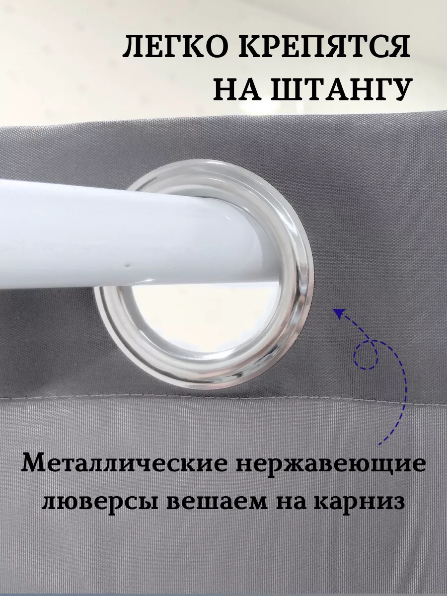 В нижнем крае шторы предусмотрен шнур-утяжелитель, который обеспечивает надежную фиксацию и предотвращает подъем ткани. А металлические люверсы из нержавеющей стали добавляют прочности и долговечности.