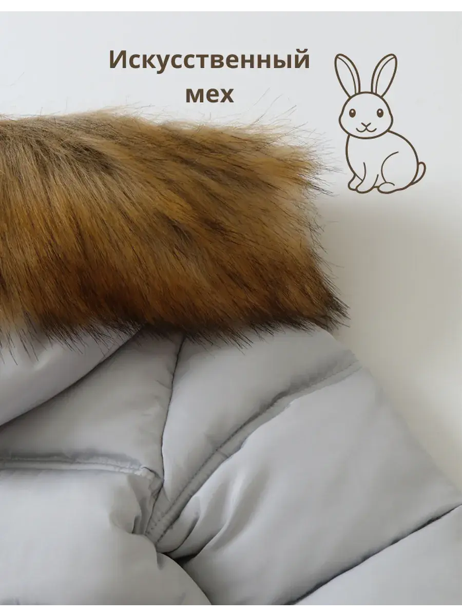 Искусственный мех на опушке капюшона мягкий и теплый, при этом никакое животное не пострадало при производстве.
