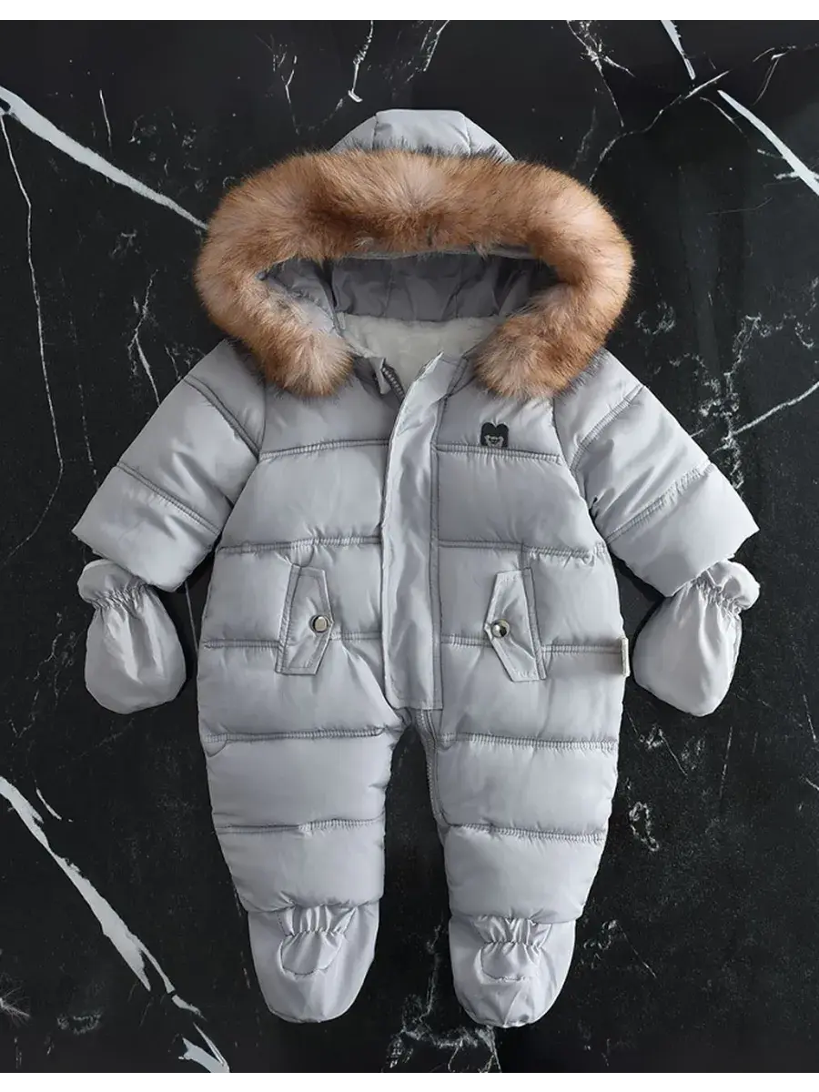 Теплый слитный комбинезон с капюшоном создан специально для малышей, чтобы обеспечить комфорт и защиту в холодное время года.